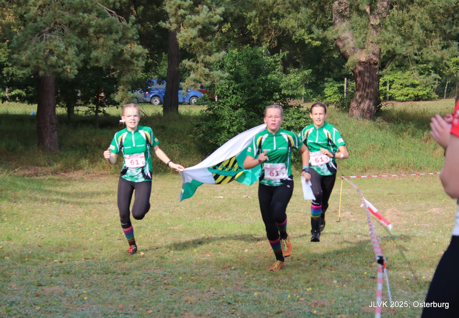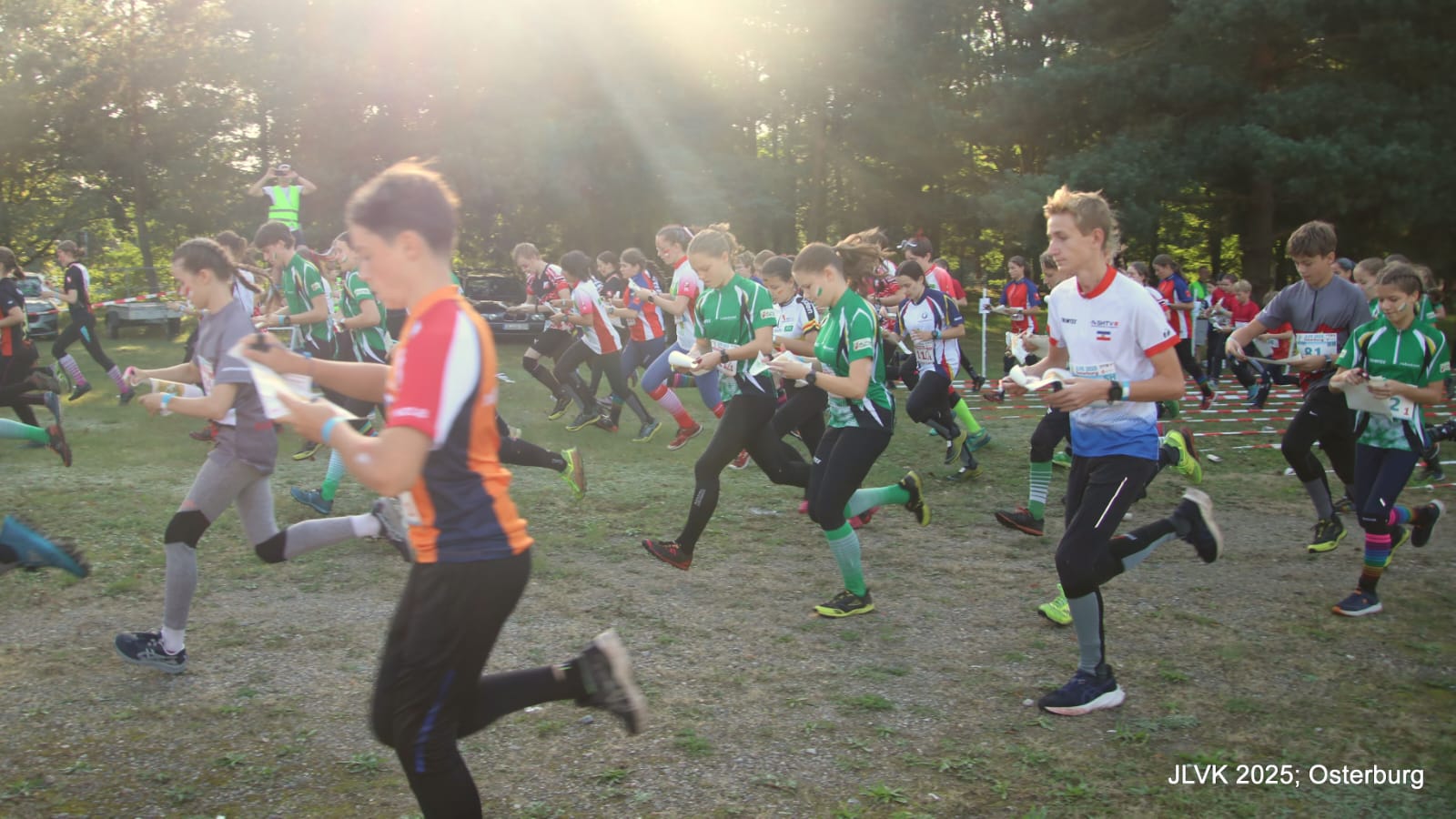 Samstag starteten wir dann mit dem Frühstück ab 7.30Uhr und machten uns danach auf den Weg ins Wettkampfzentrum, wo uns eine tolle Stimmung und optimales Wetter erwarteten. Im Krumker-Holz fanden sowohl an diesem Tag der Einzellauf, als auch am Sonntag der Staffellauf statt. Schon in der Einzelentscheidung hatten sich die Sachsen mit guten Platzierungen einen optimalen Vorsprung erkämpft, in der Juniorenwertung etwas knapper als bei der Jugend.